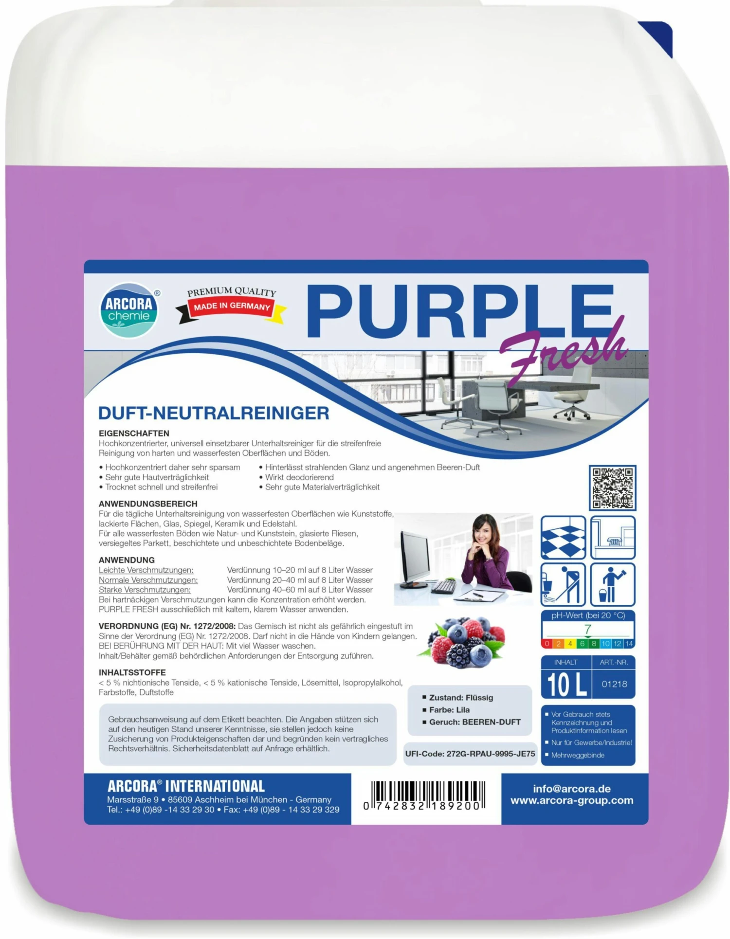Hochkonzentrierter, universell einsetzbarer Unterhaltsreiniger für die streifenfreie Reinigung von harten und wasserfesten Oberflächen und Böden.
